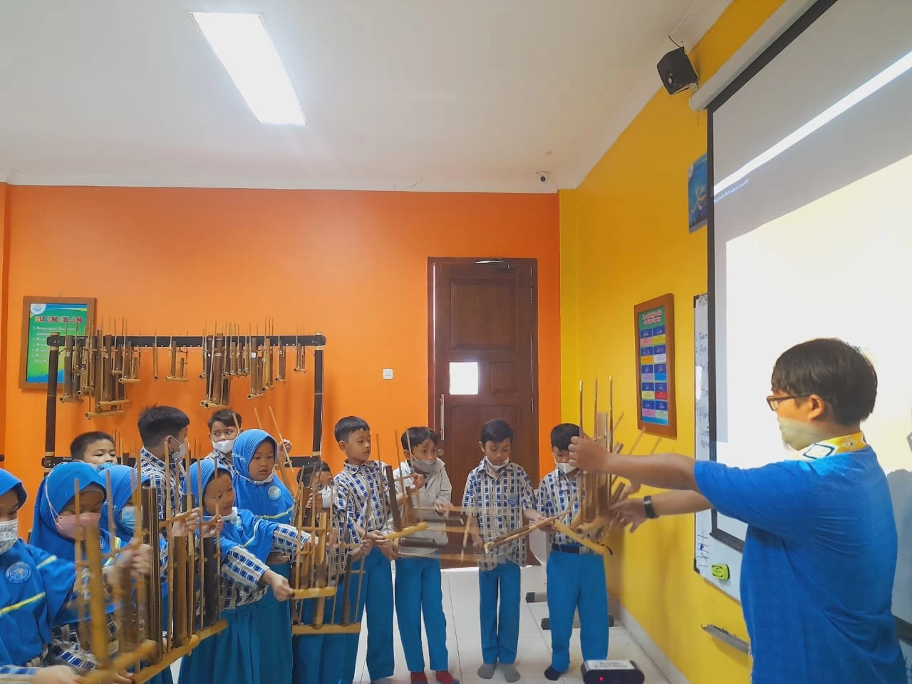 Serpong, 16 Maret 2023. Kamis manis nan indah, anak-anak belajar sambal bermain angklung bersama...